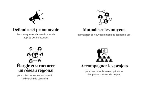 Que vous soyez artiste, chercheur·euse, journaliste, représentant·e d’un lieu, d’un festival, d’une structure de production… tous·tes les acteurs et actrices en lien avec la richesse et la diversité des répertoires de musiques et de danses dits du monde sont les bienvenu.es ! Solidairement engagé·es, plus nous sommes nombreux·euses, plus il est facile de rappeler auprès des institutions la pertinence de vos pratiques et la richesse de vos répertoires.